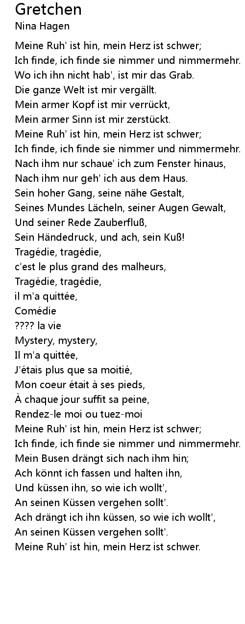| Meine Ruh' ist hin, mein Herz ist schwer. |