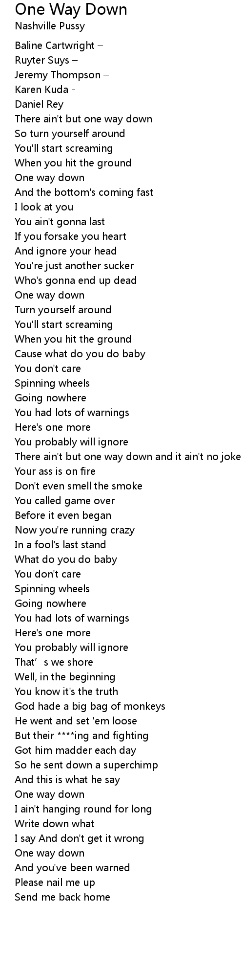 | There ain't but one way down and it ain't no joke | |