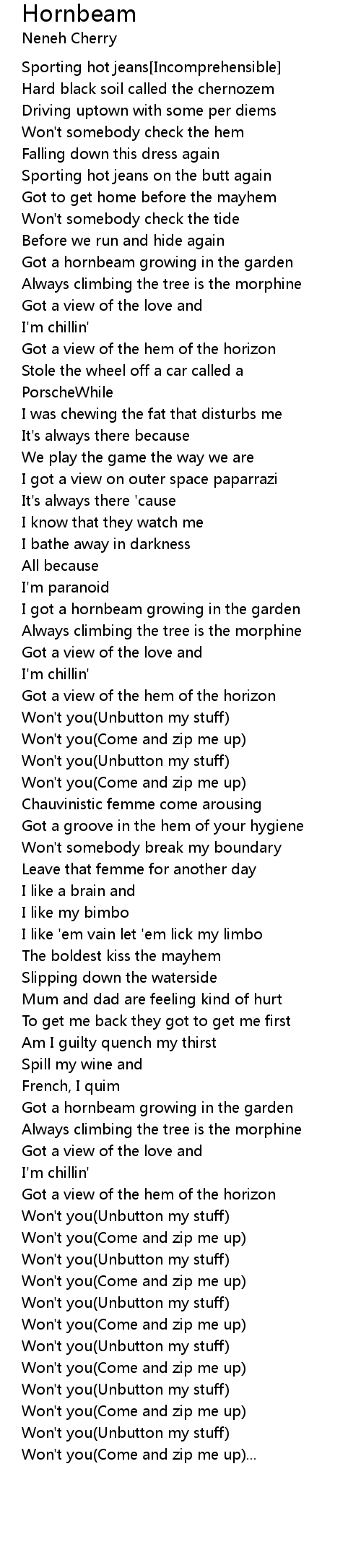 Won't you(Come and zip me up)... |