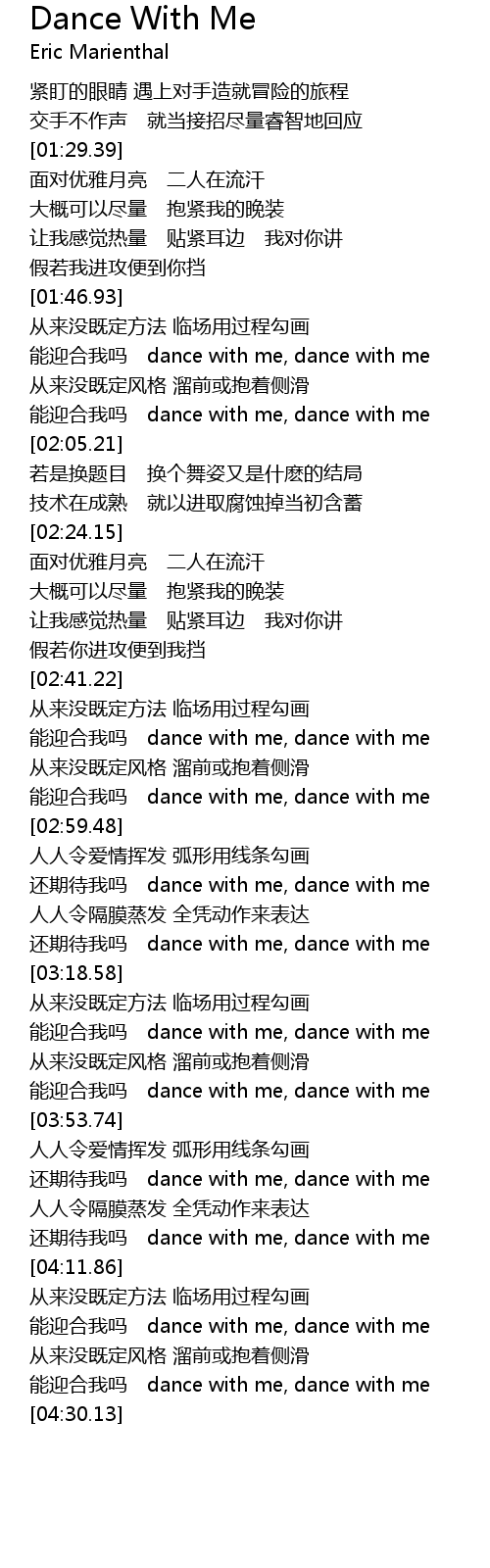 | [03:59.32] | hai qi dai wo ma dance with me, dance with me |