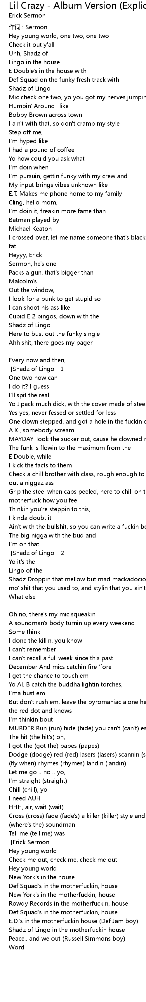 | 歌曲 | Lil Crazy - Album Version (Explicit) |