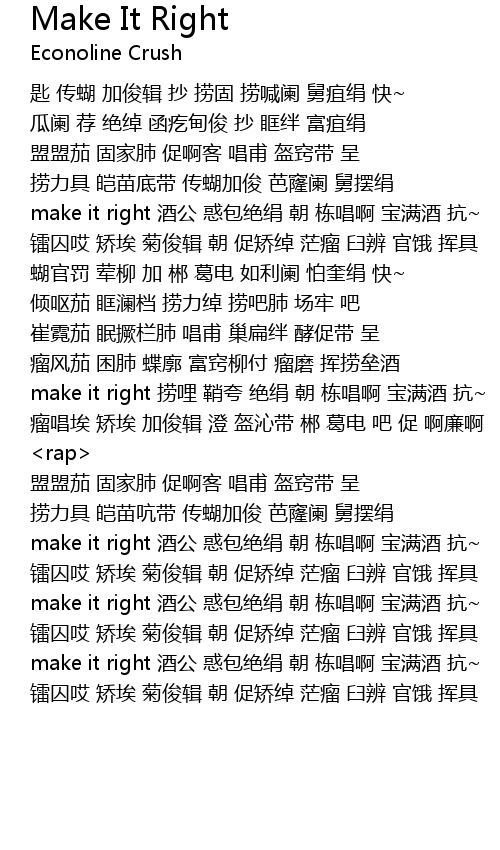 | [00:56.60] | make it right 酒公 惑包绝绢 朝 栋唱啊 宝满酒 抗~ |