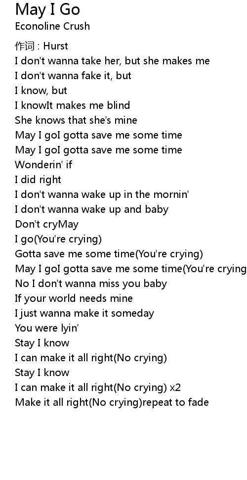| May I goI gotta save me some time(You're crying) x4 | |