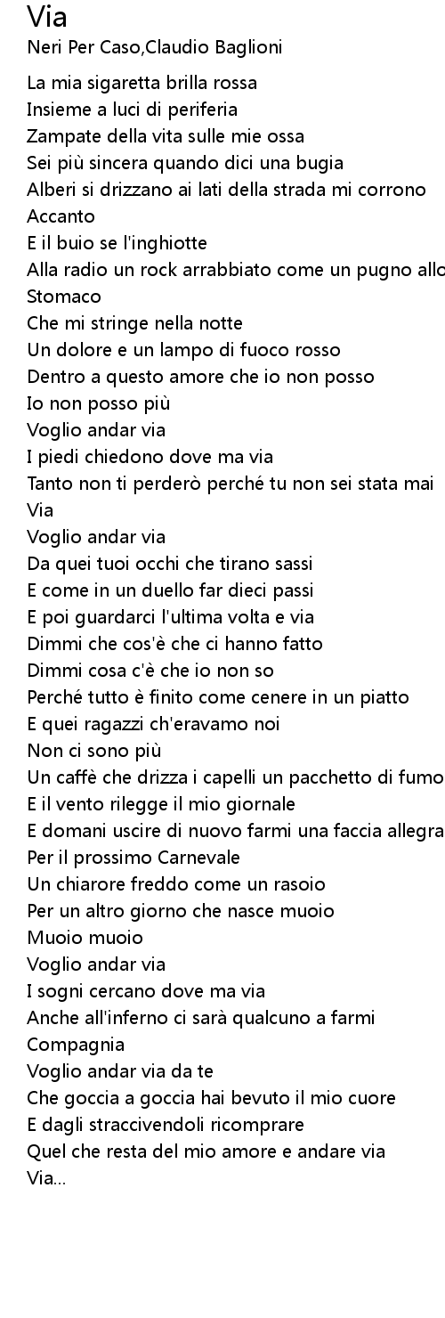 | Quel che resta del mio amore e andare via | |