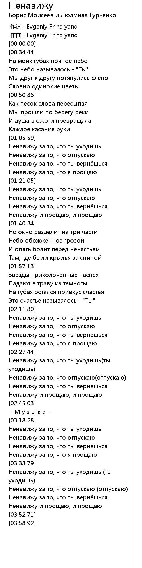 作词 : Evgeniy Frindlyand |