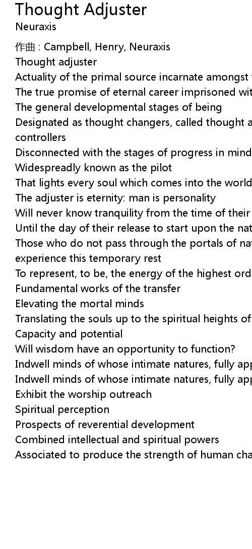 | Designated as thought changers, called thought adjusters, referred to as thought controllers | |