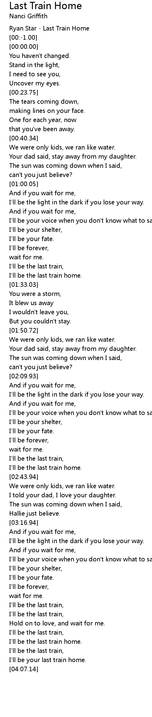 Last Train Home 歌词