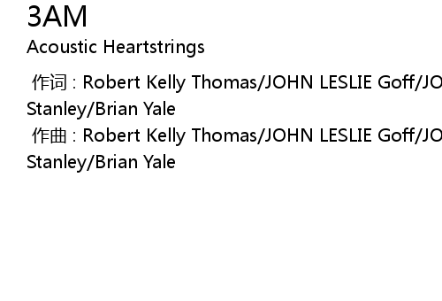 | [00:00.000] | 作词 : Robert Kelly Thomas/JOHN LESLIE Goff/JOHN JOSEPH Stanley/Brian Yale |