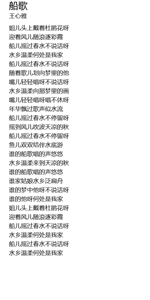 | [01:50.28] | 船儿摇过春水不停留呀 |