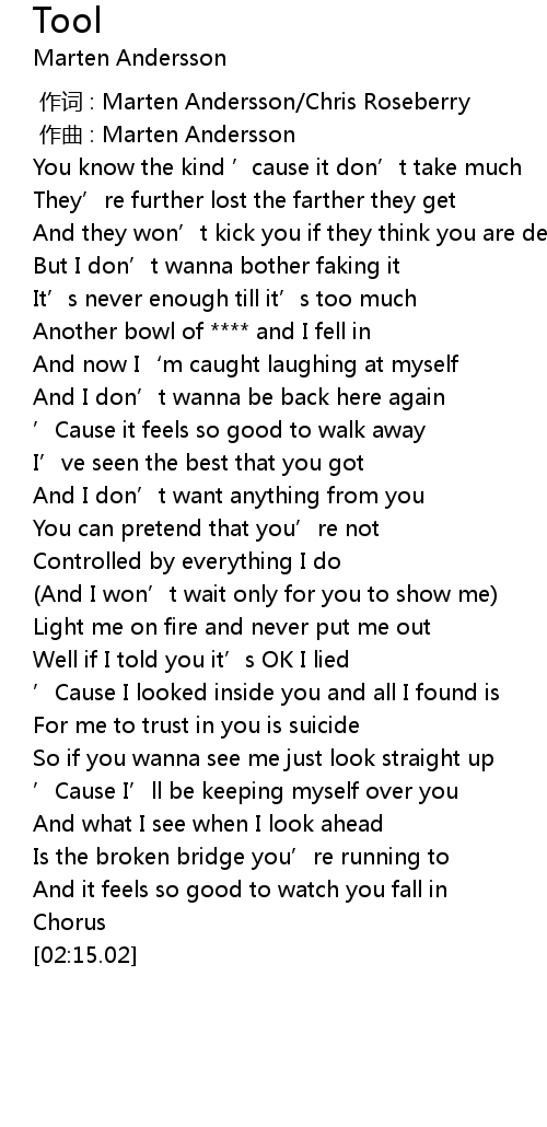 | [00:00.000] | zuò cí : Marten Andersson Chris Roseberry |
