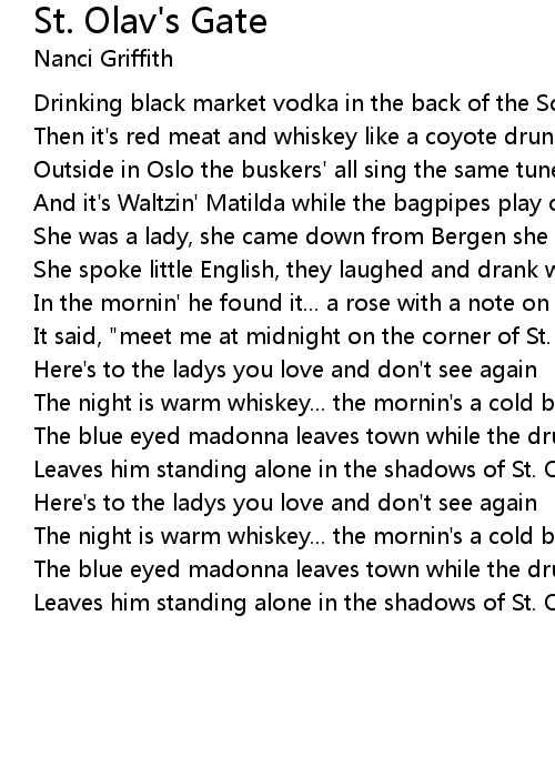 Leaves him standing alone in the shadows of St. Olav's Gate |