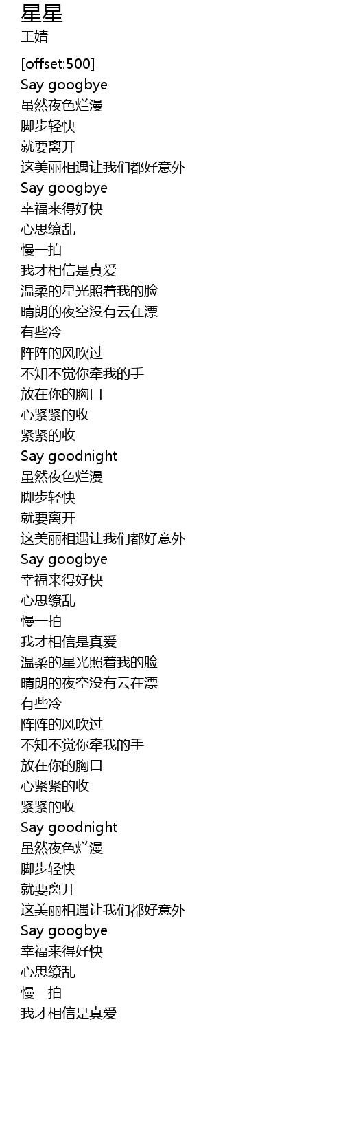 | [01:46.11] | 温柔的星光照着我的脸 |