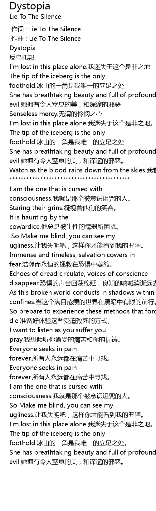 | [00:00.000] | zuò cí : Lie To The Silence |