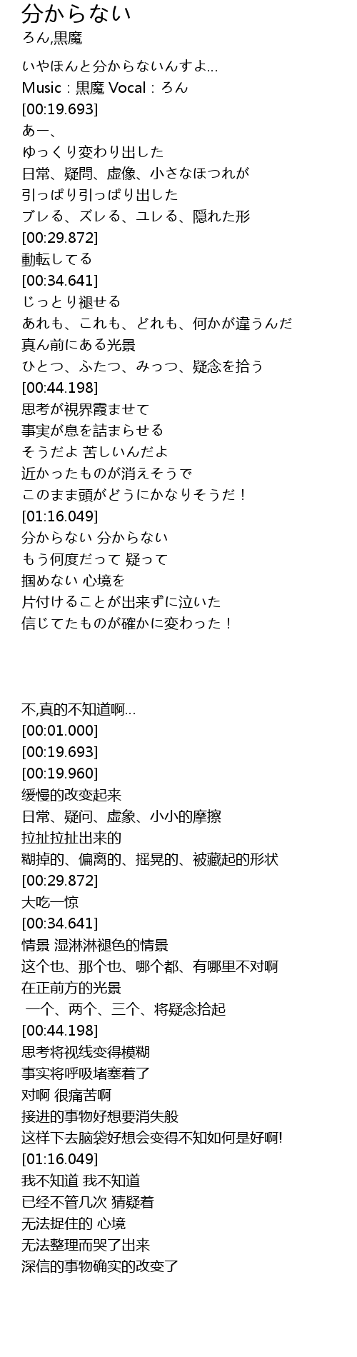 | [00:01.000] | Music:黒魔 Vocal:ろん |