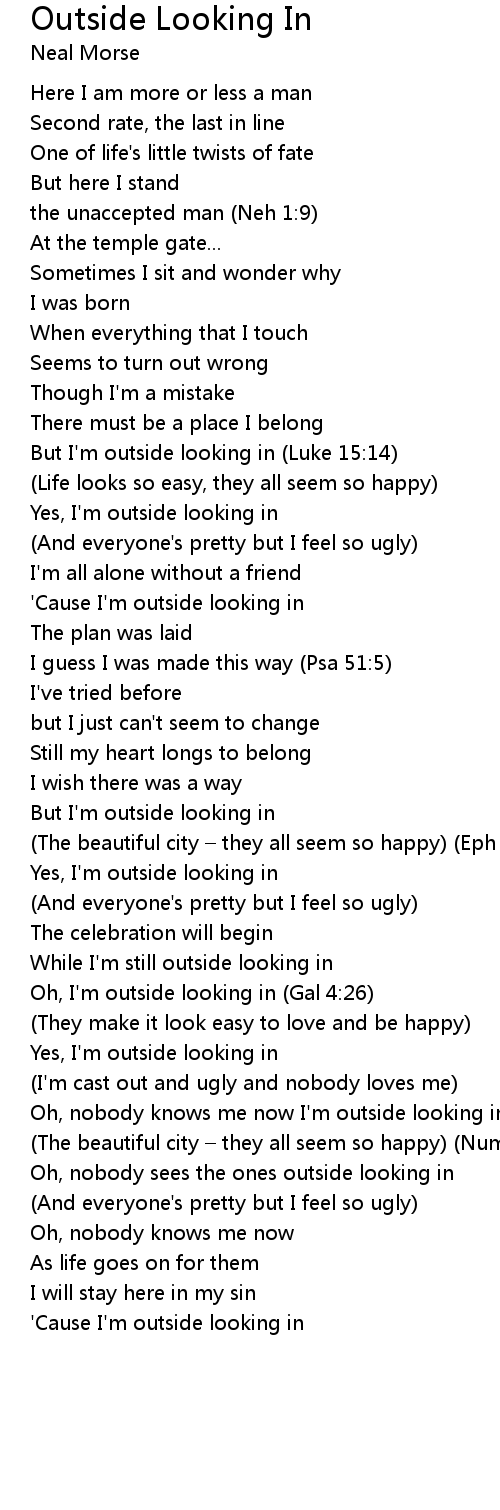 | Yes, I' m outside looking in | |