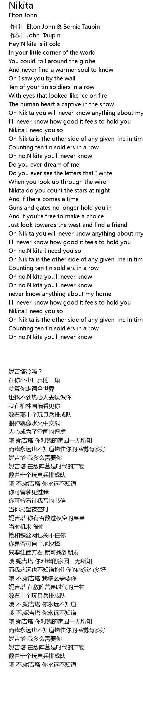 | [04:19.010] | Oh no,Nikita you'll never know |