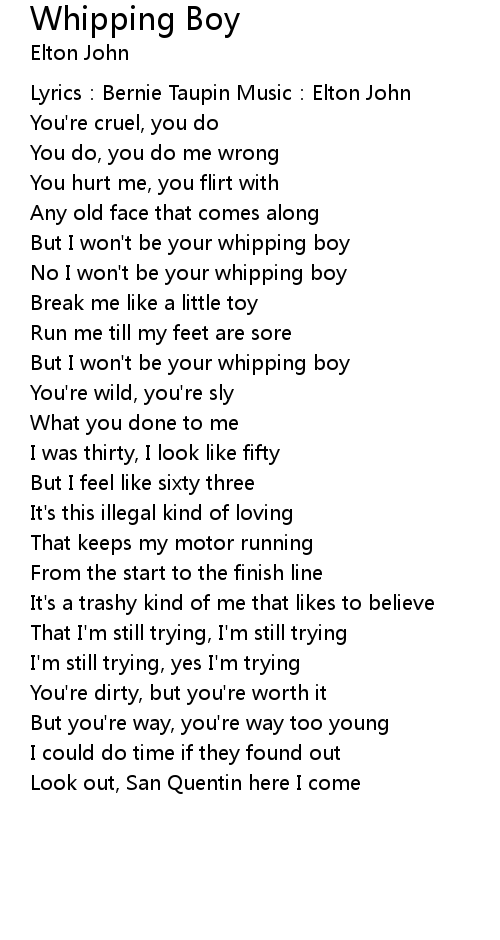 | Lyrics: Bernie Taupin Music: Elton John | |