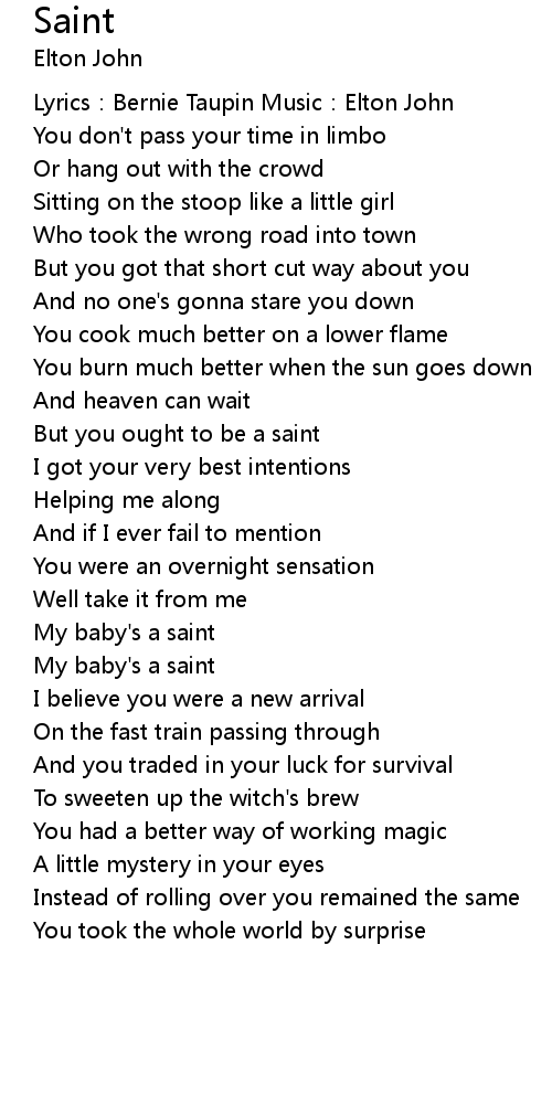 | Lyrics: Bernie Taupin Music: Elton John | |