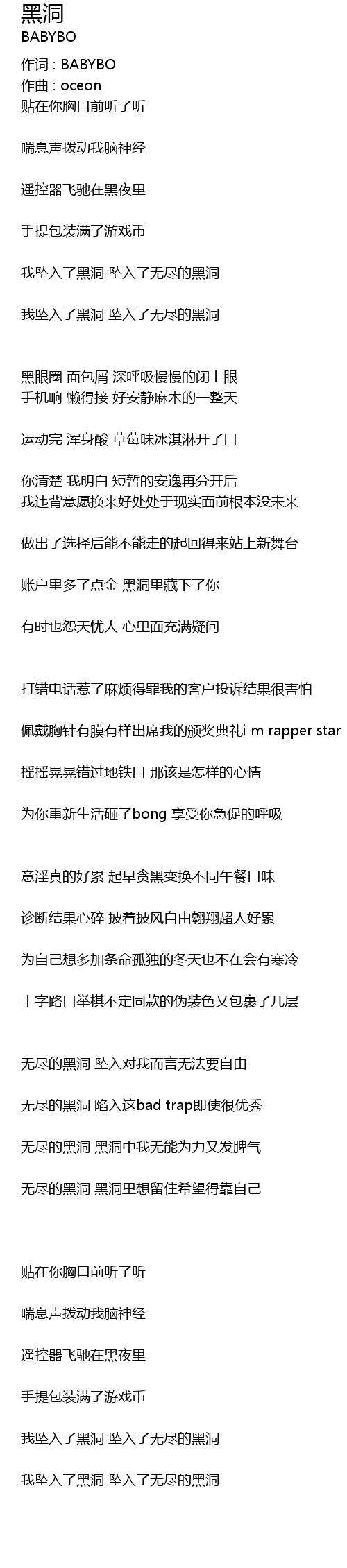 | 无尽的黑洞 黑洞中我无能为力又发脾气 | |