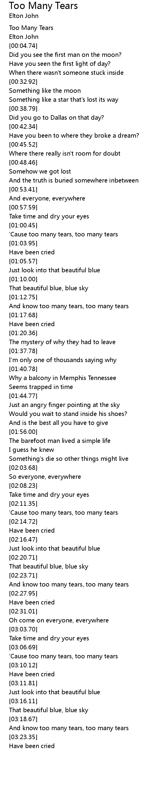 [03:19.67] And know too many tears, too many tears