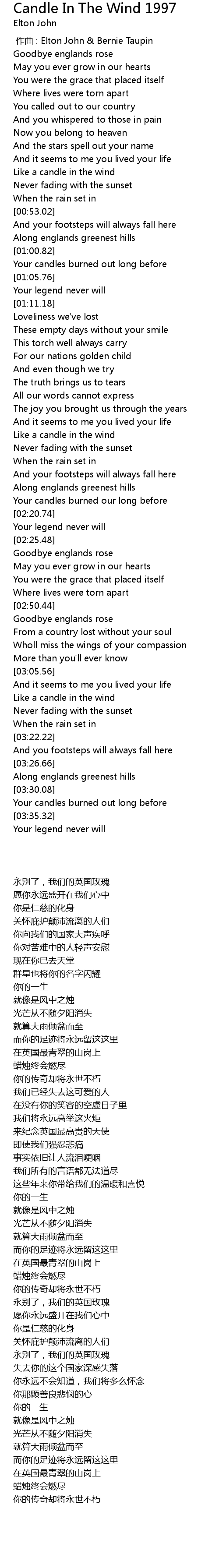 | [03:12.37] | Like a candle in the wind |