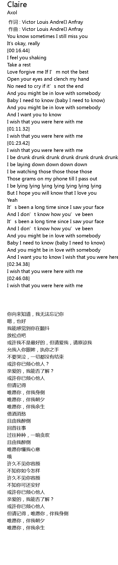 | [02:53.87] | I wish that you were here with me |