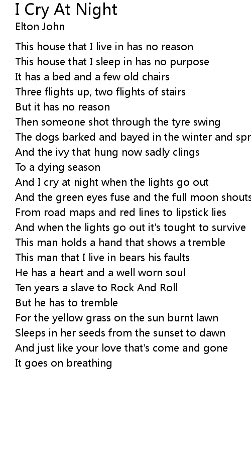 And I cry at night when the lights go out |