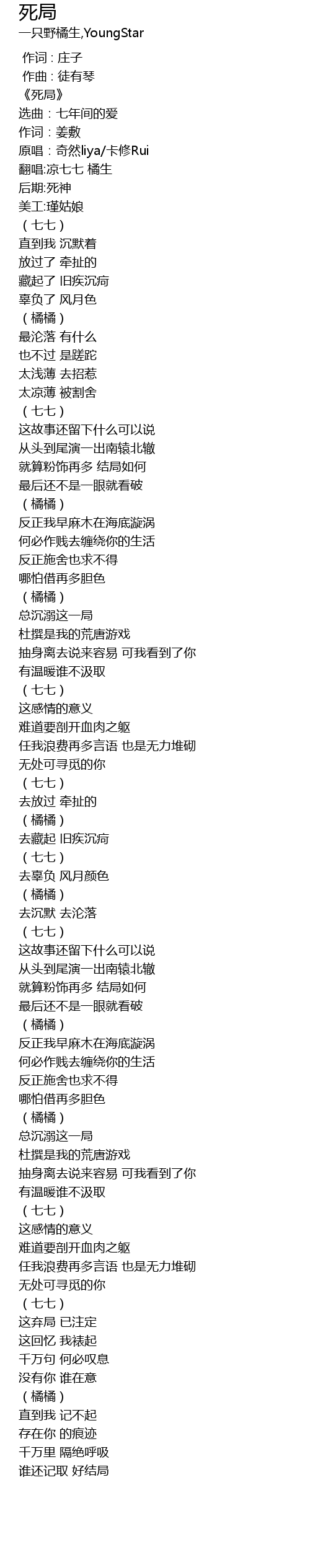 | [00:04.73] | 翻唱:凉七七 橘生 |