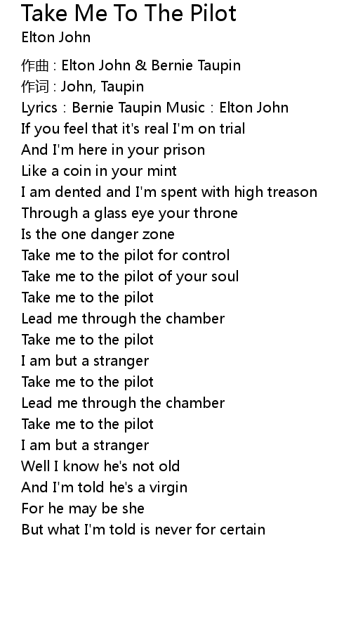 | 歌曲 | Take Me To The Pilot |