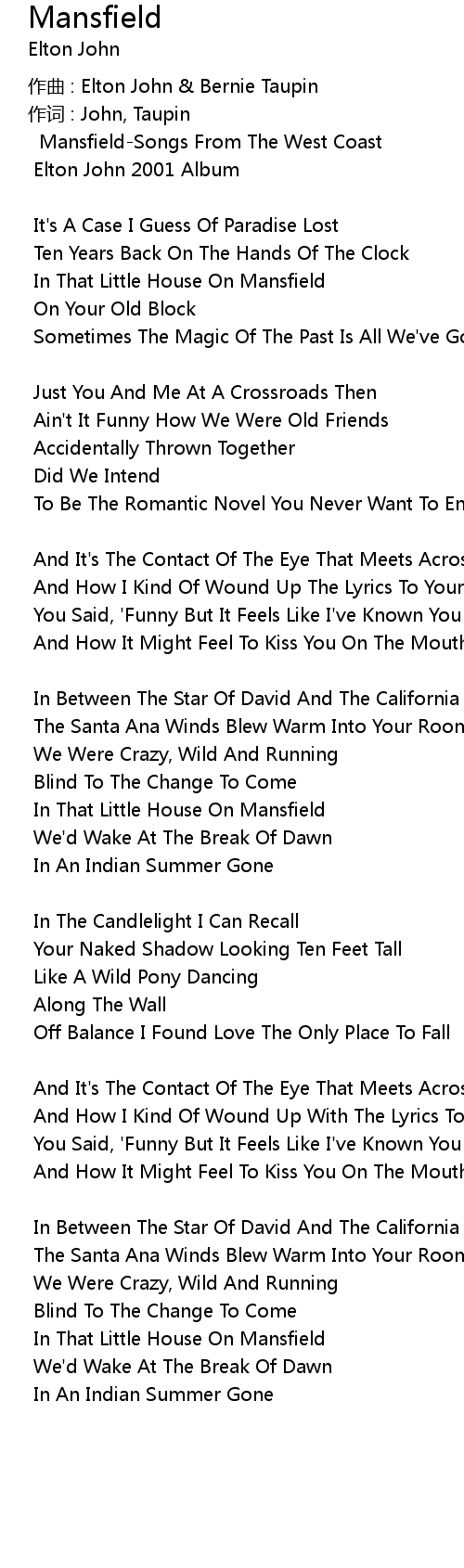 | And How I Kind Of Wound Up The Lyrics To Your Tune | |