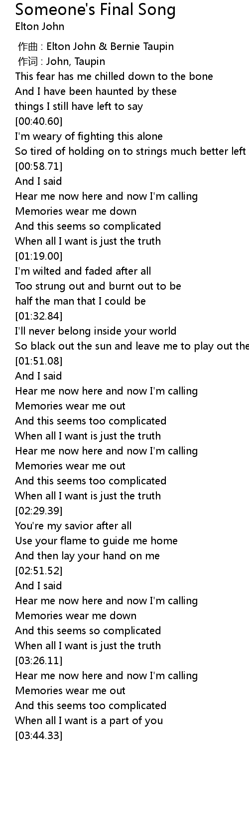 | [00:00.00] | 作曲 : Elton John & Bernie Taupin |