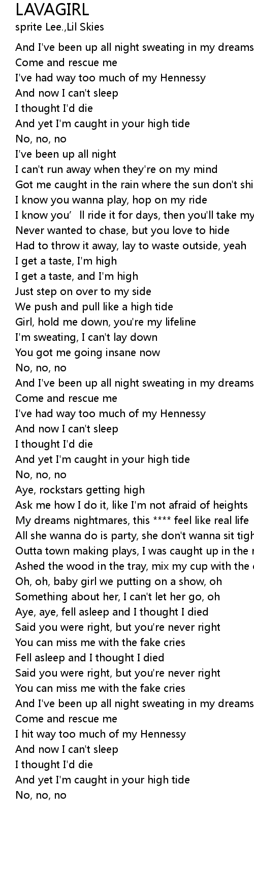 | [01:06.47] | I'm sweating, I can't lay down |
