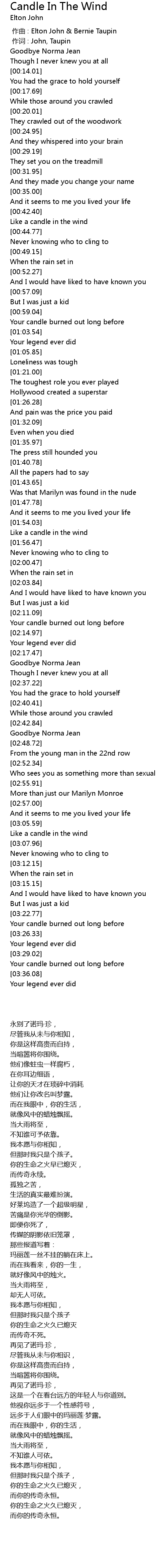 | [00:00.00] | 作曲 : Elton John & Bernie Taupin |