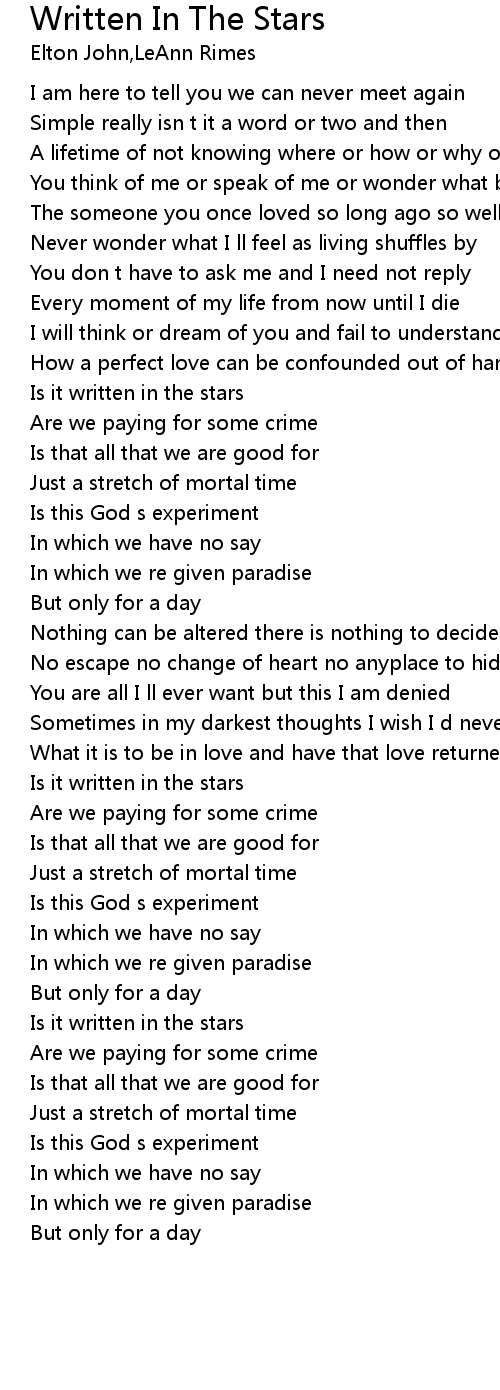 Written In The Stars 歌词