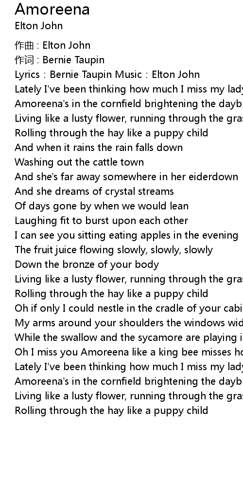 | Lyrics: Bernie Taupin Music: Elton John | |