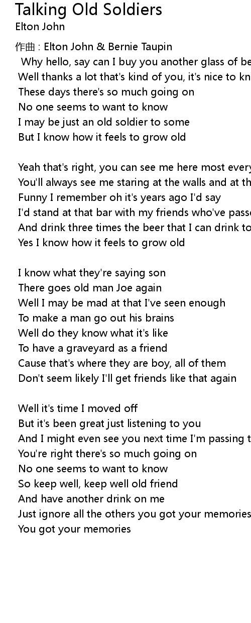 | 歌曲 | Talking Old Soldiers |