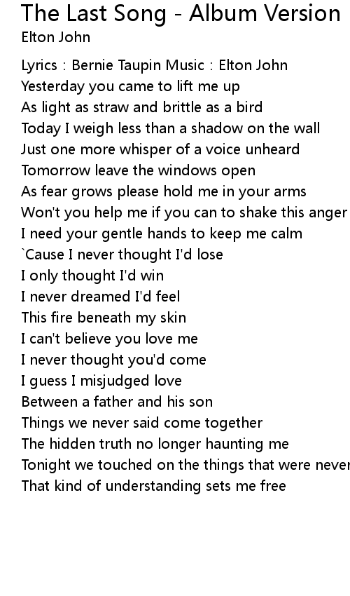 | Lyrics: Bernie Taupin Music: Elton John | |