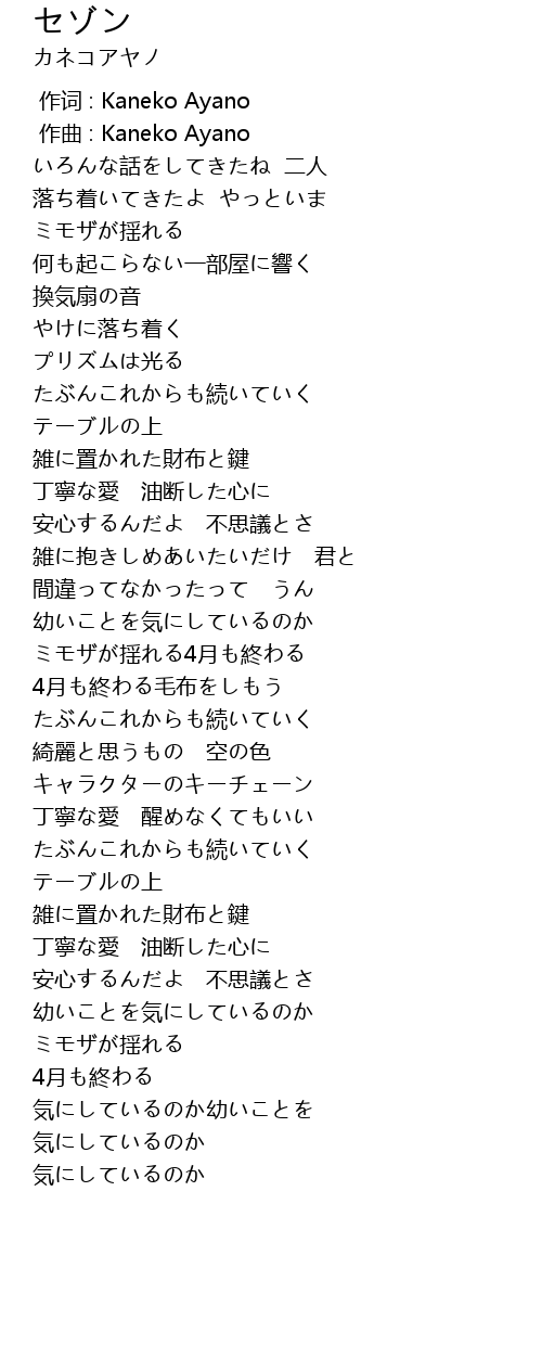 | [00:00.000] | zuò cí : Kaneko Ayano |