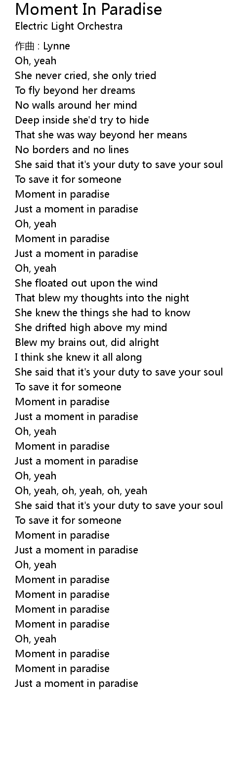 | 歌曲 | Moment In Paradise |