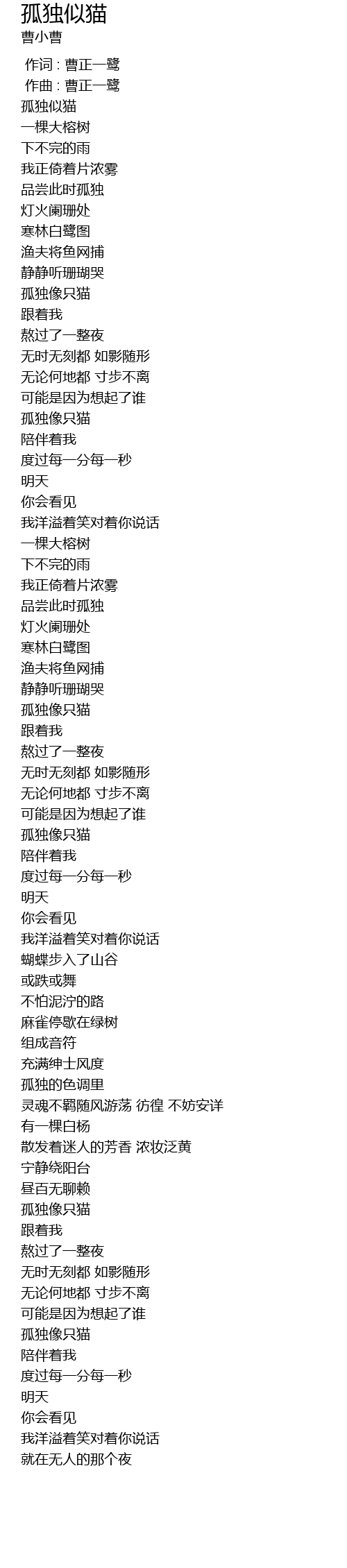 | [00:15.093] | 孤独似猫 |