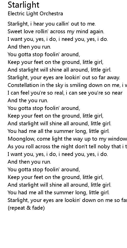 Starlight, your eyes are lookin' down on me so far away.
