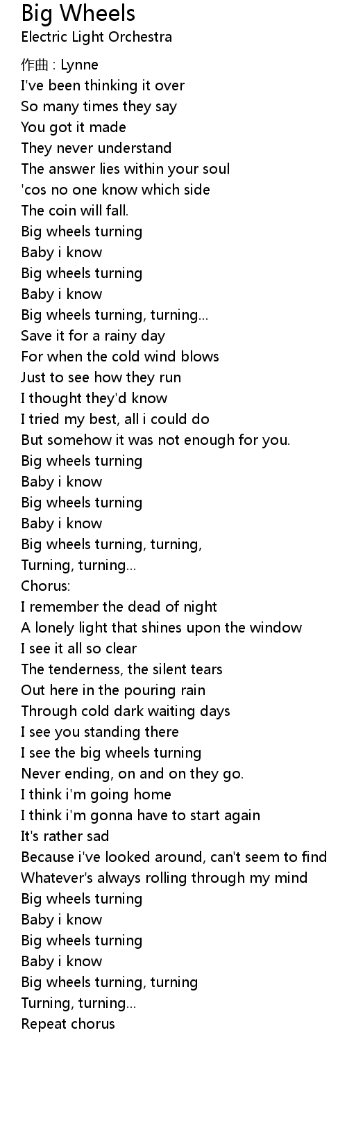 | 歌曲 | Big Wheels |