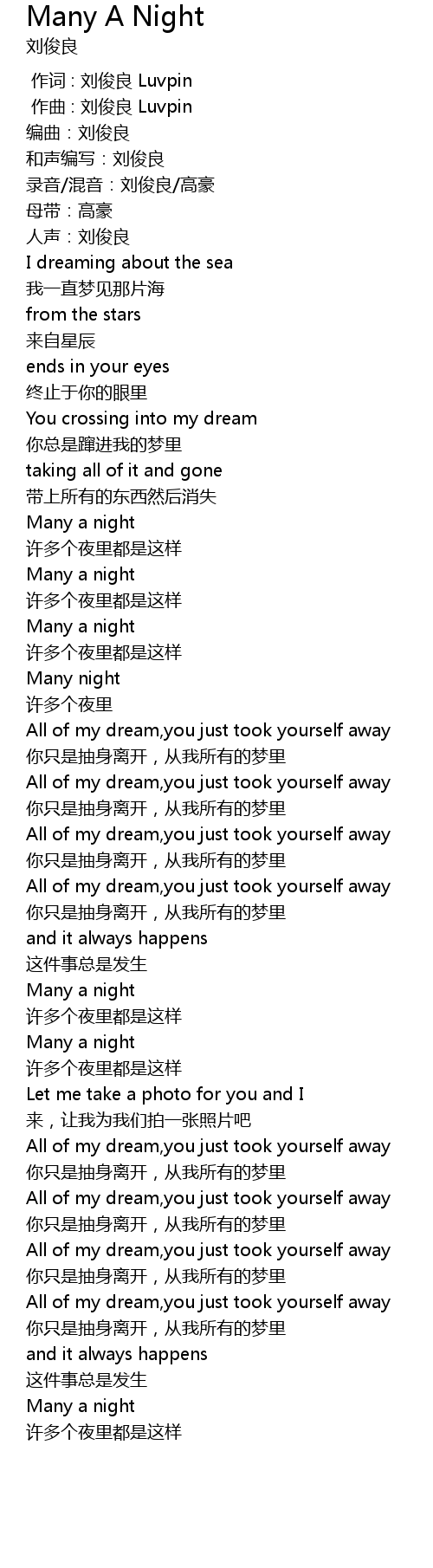 | [00:00.000] | 作词 : 刘俊良 Luvpin |