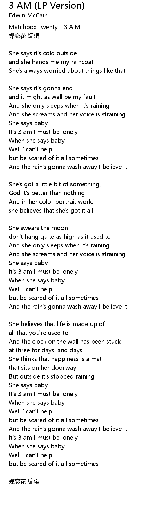 | 歌曲 | 3 AM (LP Version) |