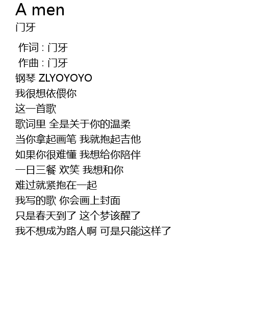 | [00:00.000] | 作词 : 门牙 |
