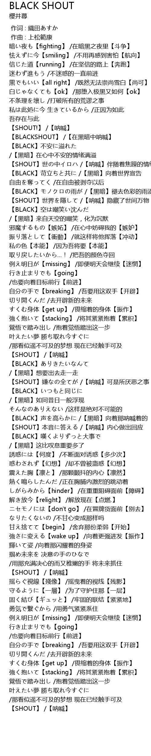 | [00:39.258] | BLACKSHOUT zài hēi àn zhōng nà hǎn |