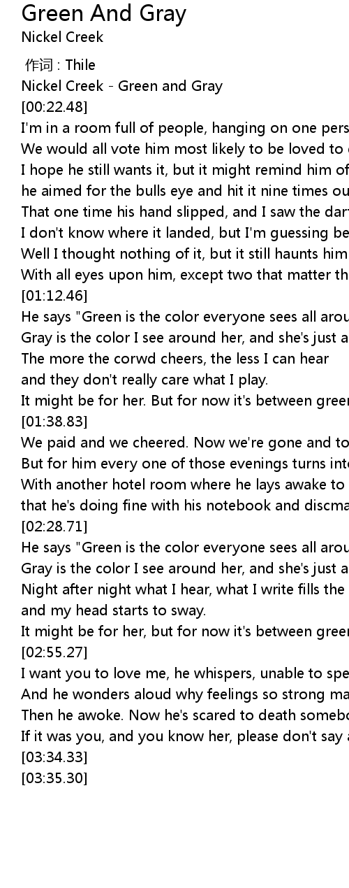 | [00:00.00] | Nickel Creek Green and Gray |