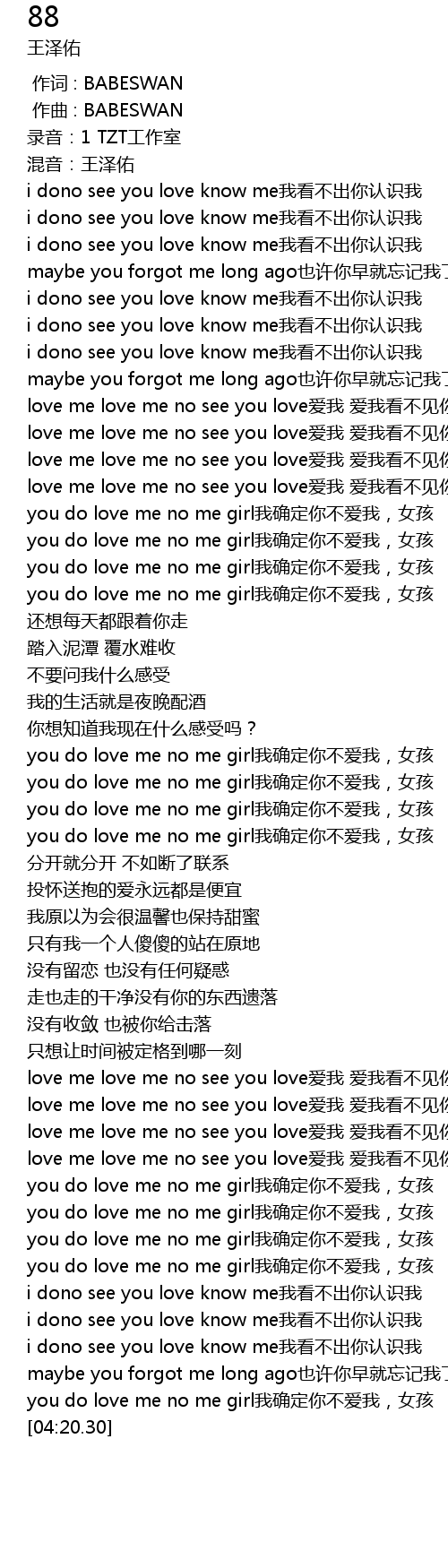 | [04:09.24] | i dono see you love know me我看不出你认识我 |