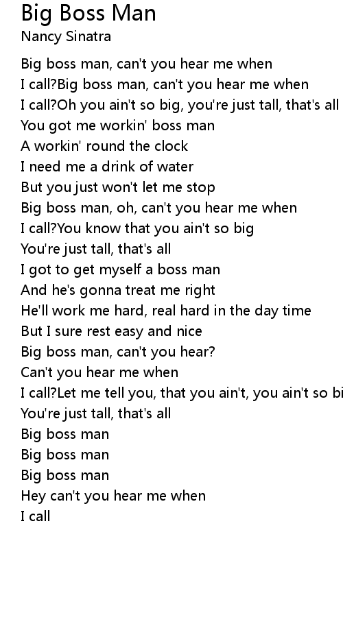 I call?Big boss man, can't you hear me when |