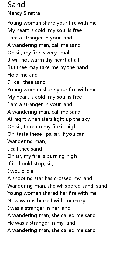 Wandering man, she whispered sand, sand |